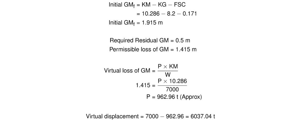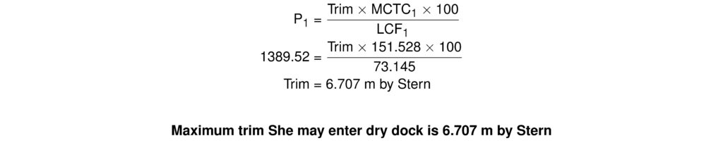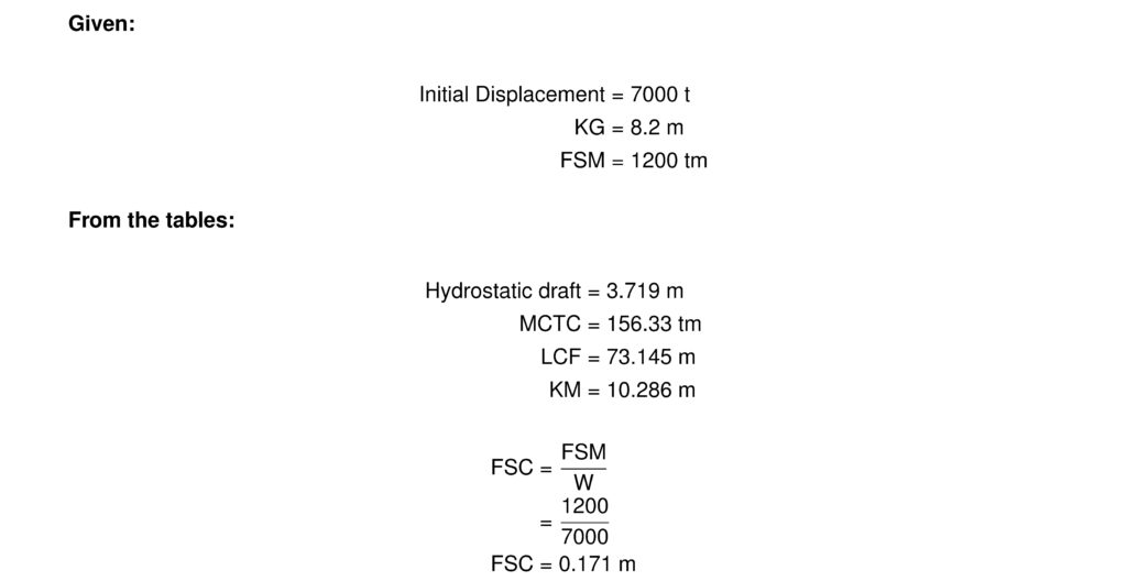 Q.3 M.V. Hindship at a displacement 7000t in SW, KG 8.2 m, FSM = 1200 tm. Find the maximum trim with which she may enter a dry-dock, if the GM at the critical instant is not to be less than 0.5m.
